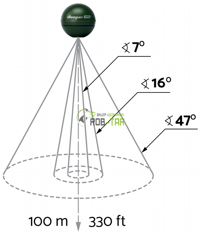 Urządzenie CHIRP pozwala ograniczyć zakłócenia pochodzące z powierzchni, więc możesz oczekiwać precyzyjnych odczytów w bardzo płytkiej wodzie i zlokalizować ryby nawet w odległości 15 cm od powierzchni. Z drugiej strony będziesz w stanie rozróżnić gatunki znajdujące się przy dnie nawet na głębokości do 100 metrów.